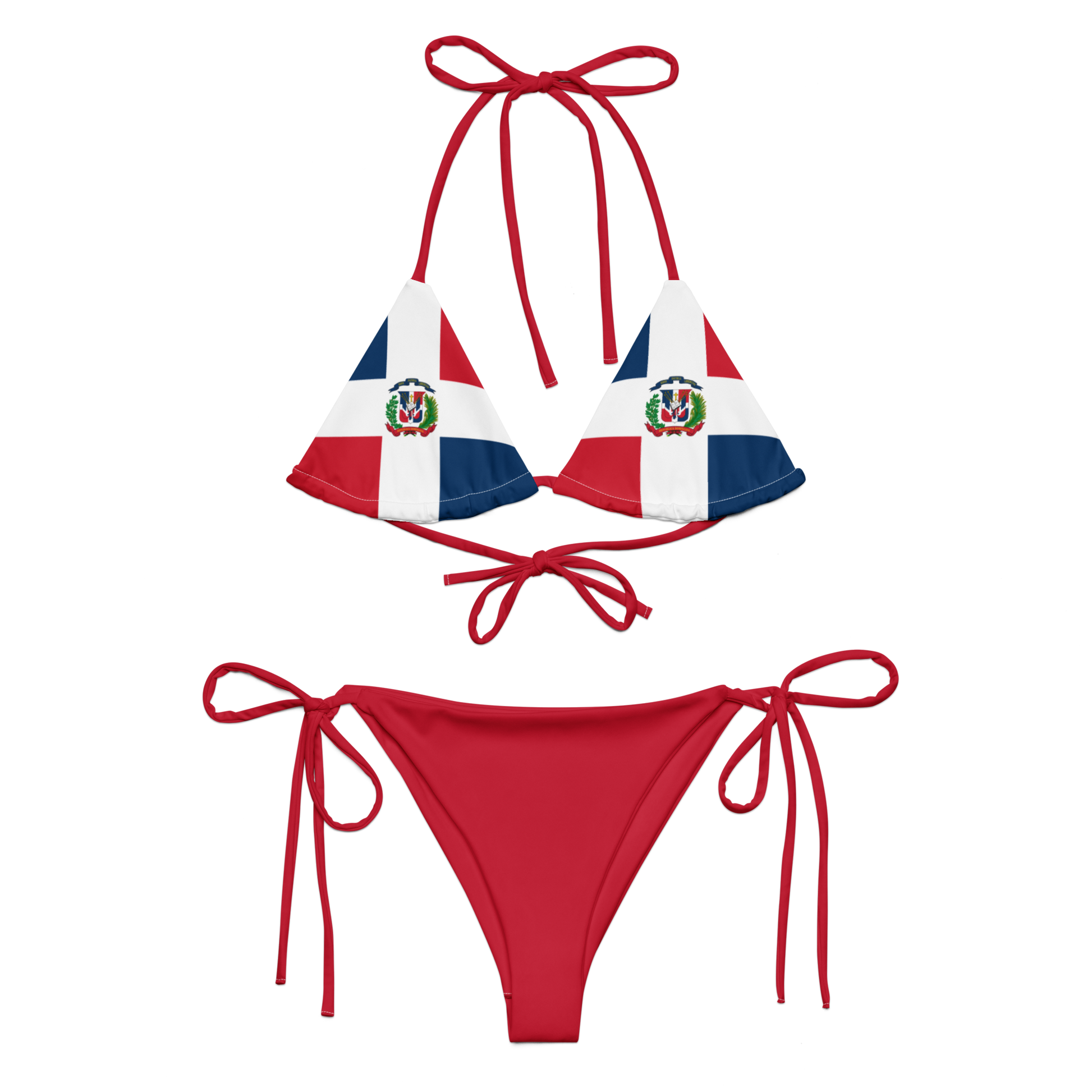 Dominican Republic Flag Two Piece Red String Bikini Set Swimsuit